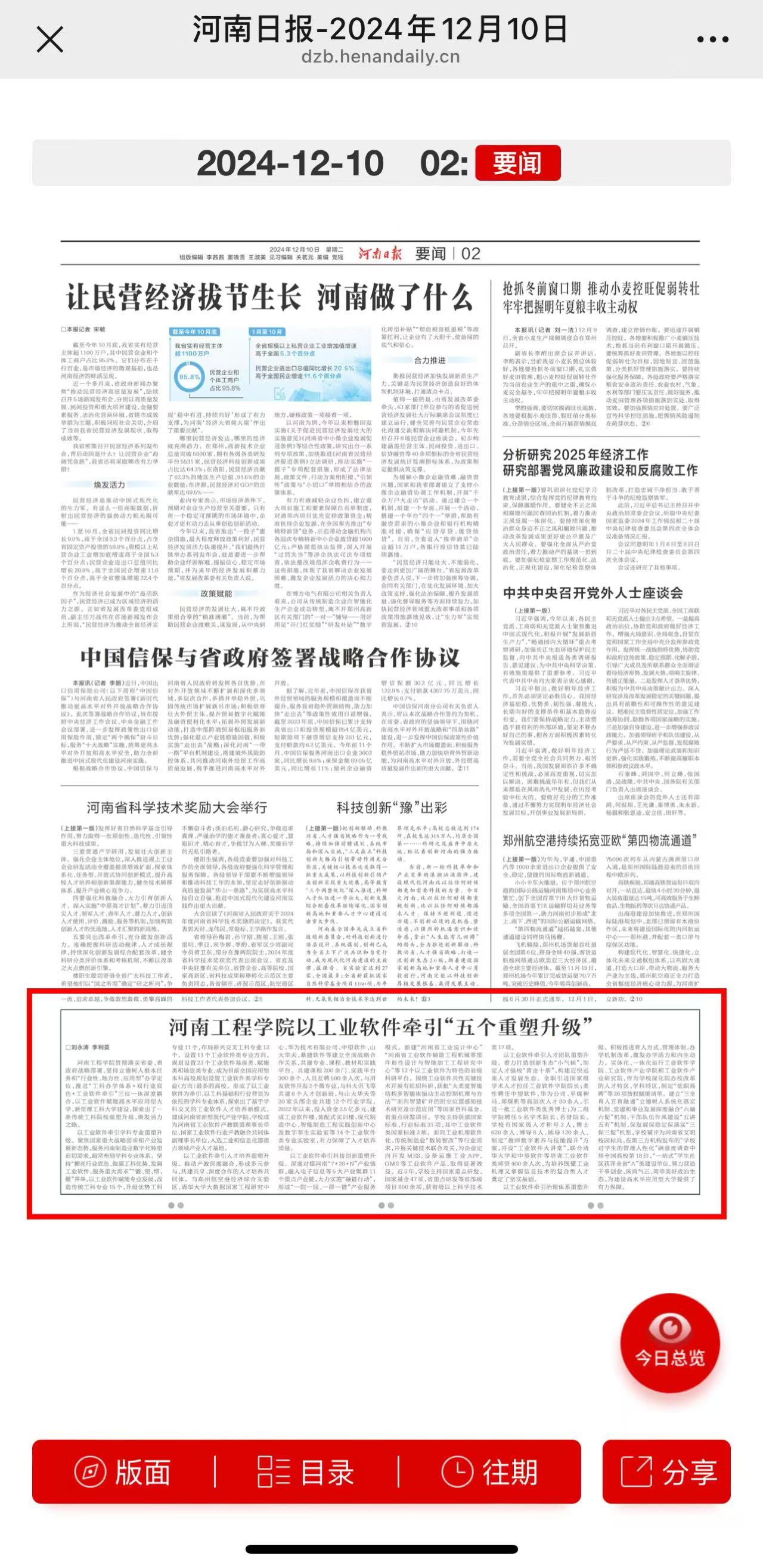 12月10日,《河南日报》第2版以《77779193永利官网以工业软件牵引“五个重塑升级”》为题,刊登了我校党委书记刘永涛、校长李利英的署名文章。