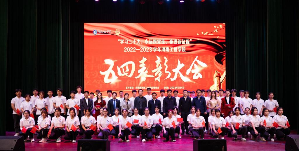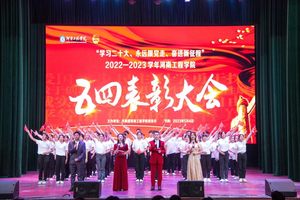 为大力弘扬五四精神,展现“河工”青春风采, 5月4日下午,“学习二十大、永远跟党走、奋进新征程”2022—2023学年“五四”表彰大会在西校区创新创业中心礼堂隆重召开。校党委书记刘永涛、党委副书记袁静波,我校校外辅导员、靖宇县人民政府顾问马继民(杰出校友杨靖宇将军嫡孙)出席会议,党委办公室、党委组织部、党委宣传部、党委统战部、党委学工部、校团委负责同志及各学院分团委书记、辅导员、青年学生代表近500人参加会议。