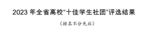 根据省委教育工委、省教育厅《关于开展2023年全省高校“十佳学生社团”评选的通知》(教思政函〔2023〕387号)要求,经学校推荐、专家评审等环节,评选出六类十佳学生社团共60支。其中我校数学建模协会成功入选学术科技类全省高校“十佳学生社团”。