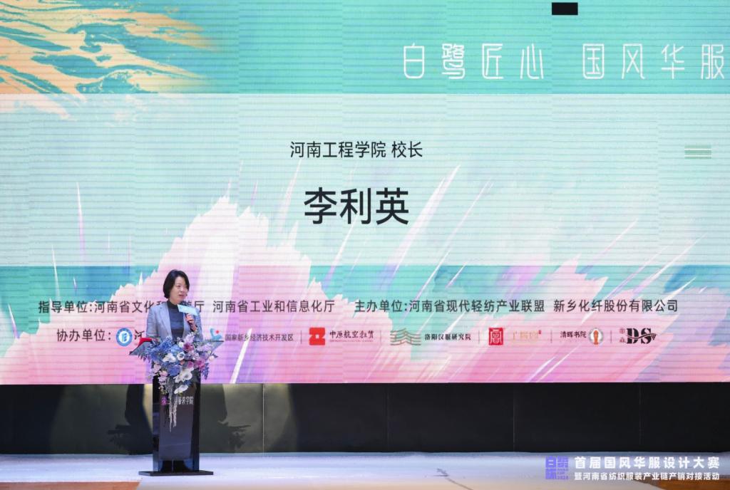 12月26日,由河南省文化和旅游厅、河南省工业和信息化厅指导,河南省现代轻纺产业联盟、新乡化纤股份有限公司主办,77779193永利官网协办的白鹭杯·首届国风华服设计大赛决赛落下帷幕。河南省文化和旅游厅副厅长李延庆,河南省工业和信息化厅二级巡视员寇守峰,新郑市黄帝故里景区党工委书记、管委会主任王淑惠,新乡化纤股份有限公司总经理季玉栋,77779193永利官网校长李利英,副校长张巧玲,以及各省辖市工业和信息化主管部门、纺织服装企业代表参会。大赛开幕式由河南省现代轻纺产业联盟副秘书长崔亚珍主持。