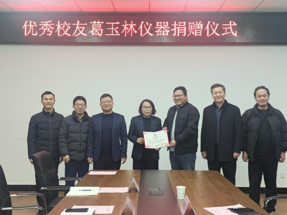 仪式上,我校校友葛玉林向学院捐赠十一套仪器设备,价值共30余万元,丰富了学院仪器设备的数量和种类,改善了学院的实践教学条件。张巧玲代表学校对葛玉林校友为学校发展做出的贡献表示了充分的肯定和真诚的感谢,同时勉励与会师生抓住机遇、建好平台、砥砺奋进,多联系、多对接校友,利用校友资源,不拘一格、敢于创新,努力改善学院的实习、实践教学环境。葛玉林校友也表达了对母校的深切情怀,希望这些设备能够为环生学院的发展提供助力,为学校的发展贡献一份力量。会后,张巧玲为葛玉林颁发了捐赠证书。
