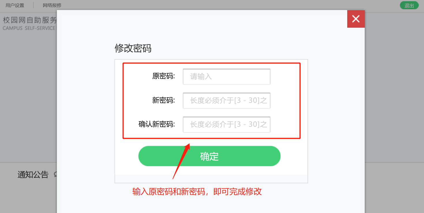 自助服务网址:http://10.255.100.1:8080/selfservice/