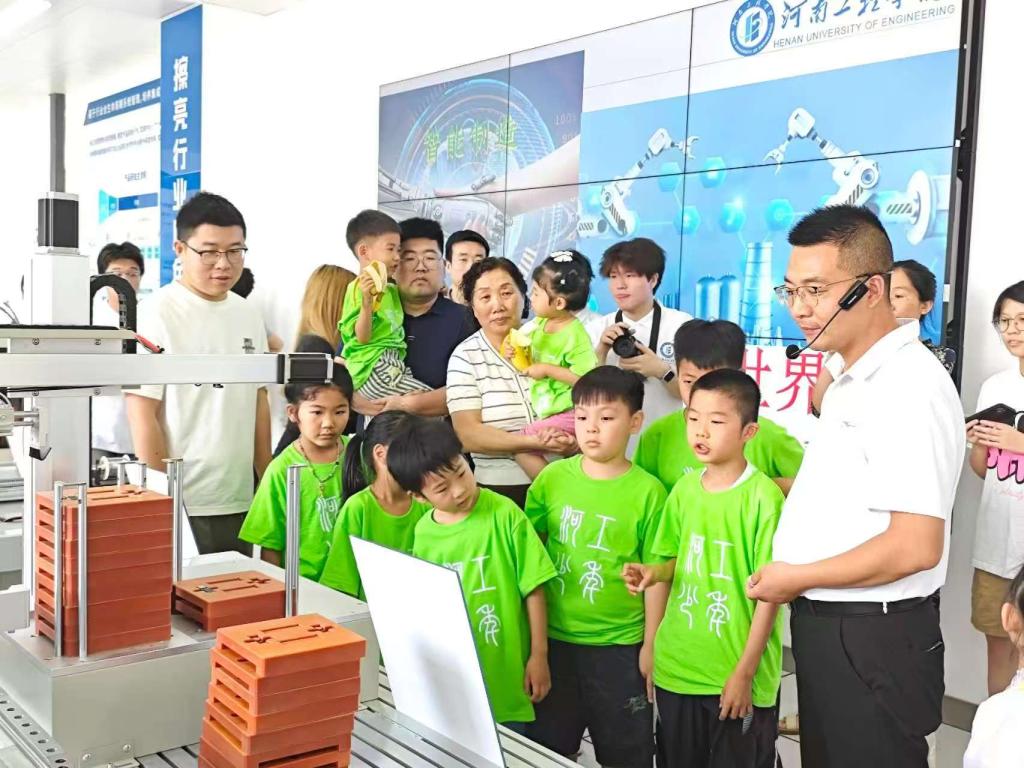 孩子们在丰富多彩的活动中深度感知大学校园。他们向校园深情“表白”,在国旗前庄重敬礼,定格下与河工大的珍贵合影。在知识探索环节,孩子们参观了承载学校历史的校史馆,于青年杨靖宇纪念馆聆听革命先辈的英勇事迹,红色精神悄然浸润童心。科技魅力同样令人着迷——智能制造U盘生产线前,孩子们发出阵阵惊叹,近距离观摩自动化生产的神奇过程,部分孩子更在指导下体验了机器操作;在纺织服装博物馆,亲手触摸棉麻原料,感受纺织工艺的源流。