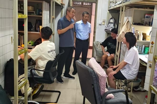 暖心入宿舍,关怀润学子:为切实做好关怀服务,党委书记潘景果、院长刘杰与老师们一同深入宿舍,与新生面对面交流,围绕日常起居、校园规划等话题,解答食堂就餐、教学楼路线、选课流程等实际问题,帮新生理清生活与学习头绪;同时重点强调安全:结合案例叮嘱用电安全,现场演示灭火器使用、告知消防通道逃生要点,提醒妥善保管贵重物品、警惕诈骗。零距离交流让学院及时掌握新生需求,也拉近了师生距离,为构建和谐校园奠基。